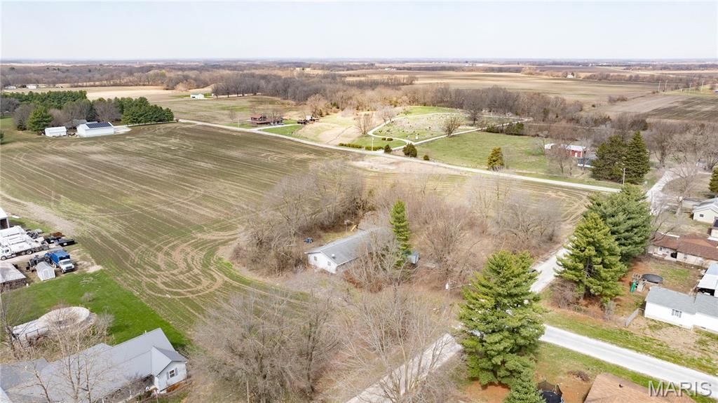 This 4.75 +/- acre corner property offers a versatile mix of usable land and functional improvements. Much of the acreage is tillable, making it well suited for agricultural use. The north side of the property includes a concrete pad with water, septic, and electric hookup, as well as a storm shelter, providing valuable infrastructure for a trailer, guest setup, or expansion.The residential structure is accessed by a gravel driveway and features an attached two-car garage and a chain-link fenced yard. Inside, the main level includes a spacious living room with a fireplace, a combined kitchen, dining, and laundry area.The main floor also includes a primary bedroom with an en-suite bathroom and shower, a full bathroom and two secondary bedrooms. The full, unfinished lower level spans the footprint of the home and offers significant storage or future finishing potential, with additional laundry hookups.With acreage, existing utilities, and multiple options for use and improvement, this property offers a strong opportunity for buyers seeking to make a space their own with flexibility and long-term potential. NOTE:The neighboring farmer will retain the right to farm the property for the 2026 crop year under an existing agreement with the seller. Possession for farming purposes will transfer to the buyer following the 2026 season, at which time the buyer may utilize the property as they see fit.