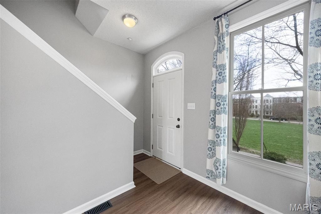 New Town offers a community lifestyle with walkable restaurants, shops, amphitheater, lakes, fantastic pools, volleyball, and parks scattered around the compound. And this updated row-home is as low maintenance as it gets with Civic Green Park as your front yard! Walking into your new home will feel amazing with tall ceilings, open floor plan, and natural light pouring in. A half bath and the back deck leading to the oversized garage and all New Town has to offer makes the main floor a versatile space, whether you're working from home, hosting the Cardinals Opening Day watch party, or getting ready to take the dog and kids for a walk. Upstairs you will find each bedroom has a full bath attached with walk in closets! The peak of convenience is the 2nd-floor laundry. No need to haul your clothes up and downstairs. So that frees up a bonus room downstairs to be a great office, playroom, or extra sleeping space.