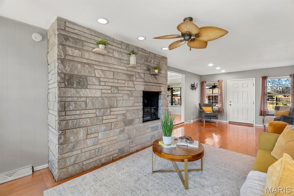 IMMACULATE BRICK RANCH IN THE HIGHLY DESIRED OAKLAWN TERRACE SUBDIVISION! Stunning home with gleaming hardwood floors that flow seamlessly throughout the main level and display timeless charm and meticulous care. Entry foyer leads to a bright living room featuring a beautiful see through stone fireplace. Open dining room is the perfect space to gather with friends and family. Functional eat in kitchen features an abundance of white cabinetry and quartz countertops, plus includes sub zero refrigerator, electric range, microwave, and dishwasher. Spacious bedrooms are serene with good closet space. Large main hall bath. The cozy family room will be your favorite place to hang out. Gorgeous stone fireplace adds warmth and natural character whether a fire is crackling or not. This home feels both lived-in and pristine, a perfect blend of classic and modern comfort, with the bright and open floor plan stealing the show. Enclosed screened in patio is the perfect spot to kick back and relax - enjoy your morning coffee or evening wine. Lower level has potential to be anything you want - currently a non conforming bedroom, but could be a second family room, playroom, office or exercise room. Great storage space too. 2 car attached garage. The exterior looks polished and features a classic brick facade. Tidy lawn and freshly manicured landscaping. Backyard includes a tranquil water garden. Recent updates includes: new landscaping, remodeled front porch, new garage door, 5 new storm doors, new flooring in kitchen and baths, freshly painted and updated light fixtures. Attentional to detail throughout. Just move in and call it HOME! Buyers to verify all MLS data, including but not limited to, square footage, measurements, taxes, exemptions, lot size, etc.